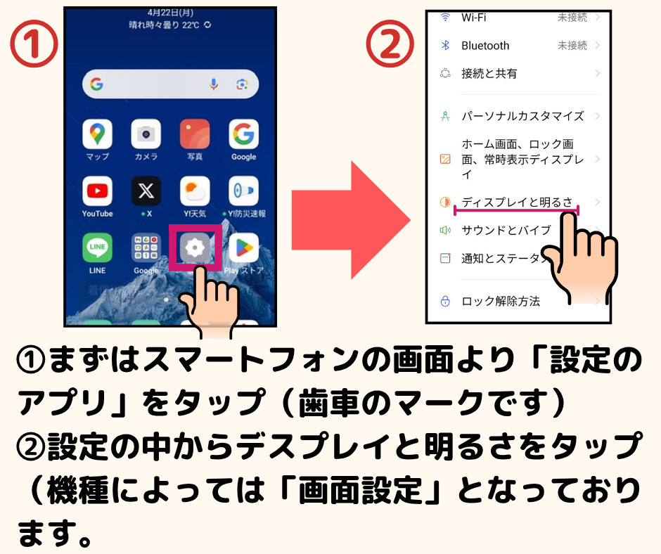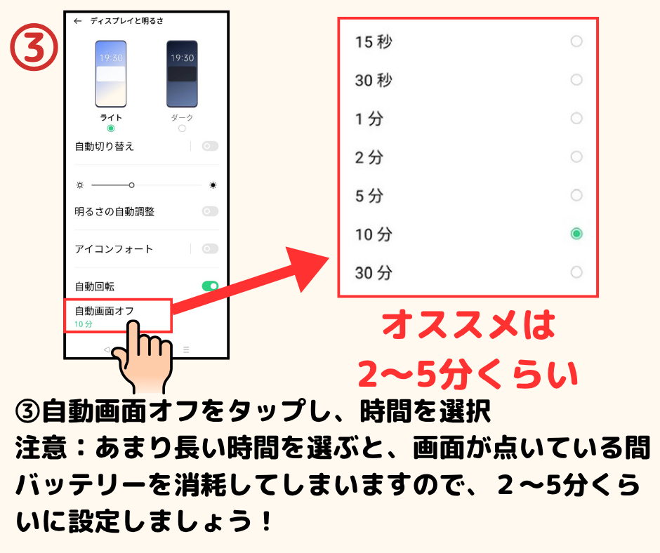 自動画面オフ設定(画面が光っている時間調整)